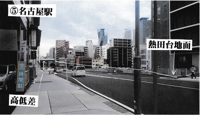 熱田台地と名古屋駅の高低差は3mくらいあります。