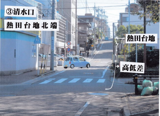 熱田台地と堀川の水面との高低差は10m近くあります。
