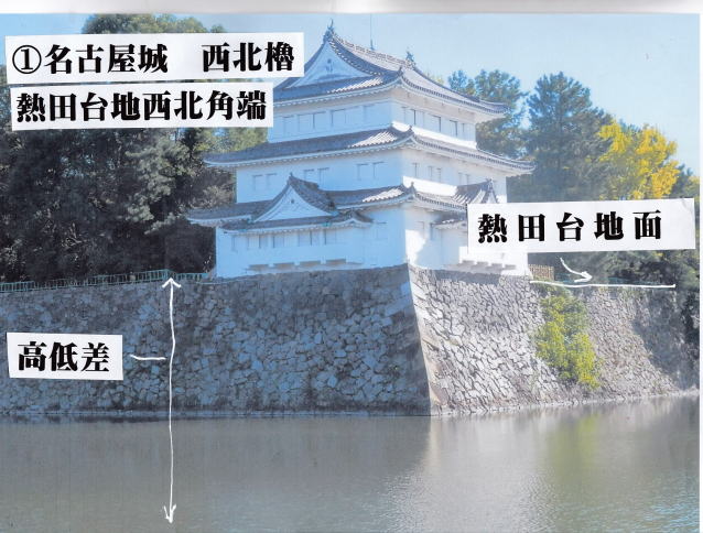 熱田台地北端の名古屋城 熱田台地とお堀の高低差は7mくらいあります、